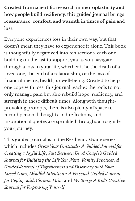 Created from scientific research in neuroplasticity and how people build resiliency, this guided journal brings reassurance, comfort, and warmth in times of pain and loss.