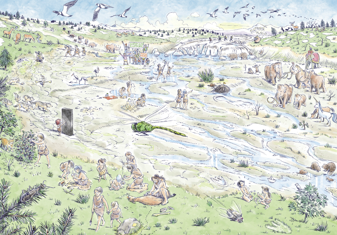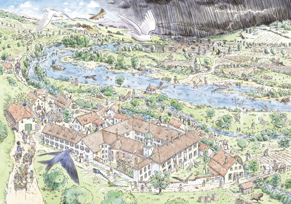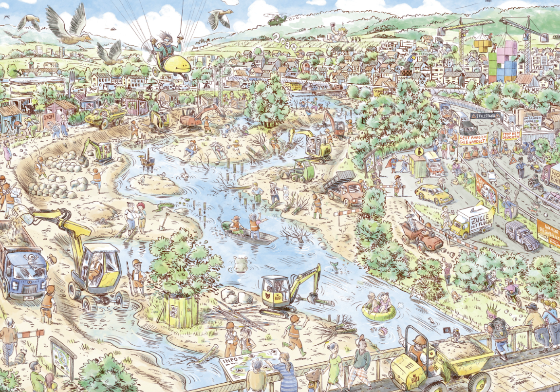 In this Wimmelbook, the Baden-based illustrator Julien Gründisch traces the history of a river from its origins to the present day.