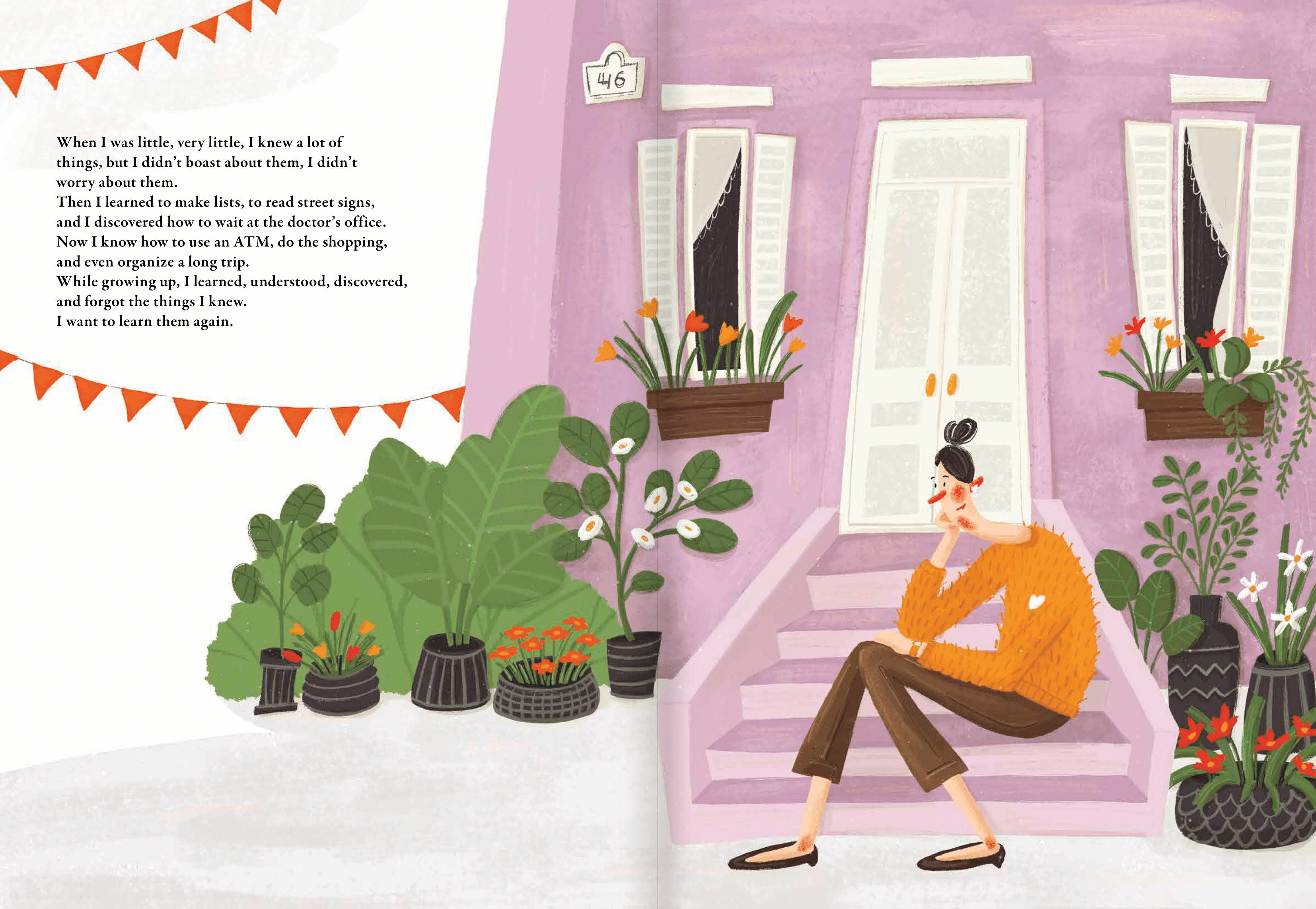 When I was little, very little, I knew a lot of things, but I didn’t brag about them, nor did I worry about them. Then I learned to make lists, read road signs, and figured out how to wait at the doctor’s office. Now I know how to use an ATM, do the shopping, and even plan a long trip. As I grew, I learned, understood, and discovered, but I forgot the things I once knew. Now, I want to learn them again. To learn again how to see, to listen, to give, to say yes and to say no, to love and to love oneself.